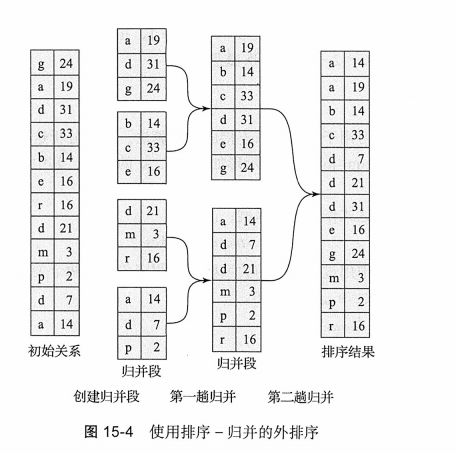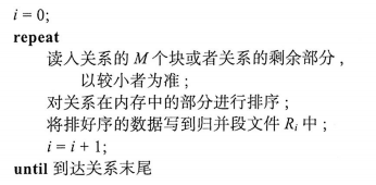 对不能全部放入内存中的关系进行的排序被称为外排序。对于外排序最常用的基数是外排序 - 归并算法。