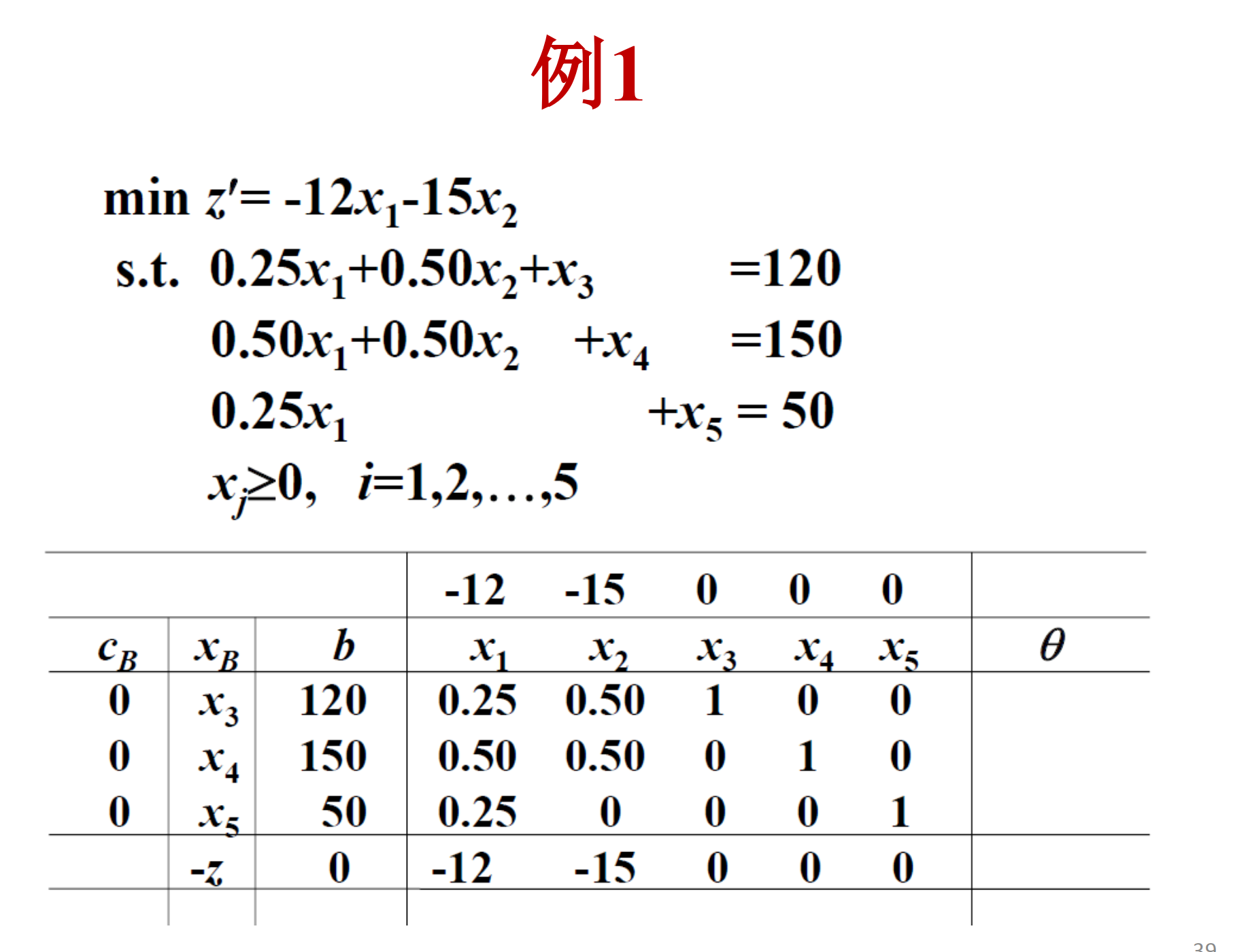 取 \(x_{n+i} (i=1,2,...,m)\) 作为基变量,初始基本可行解为:
