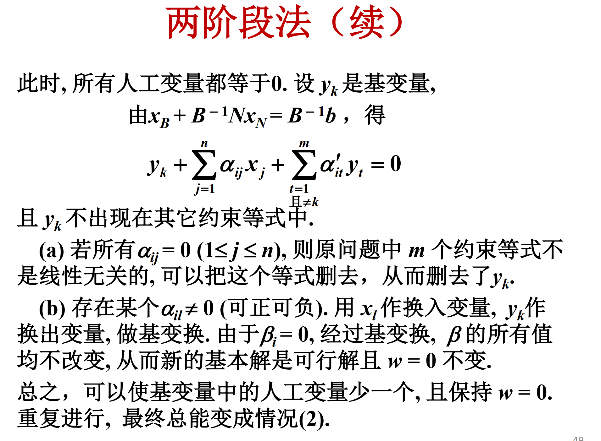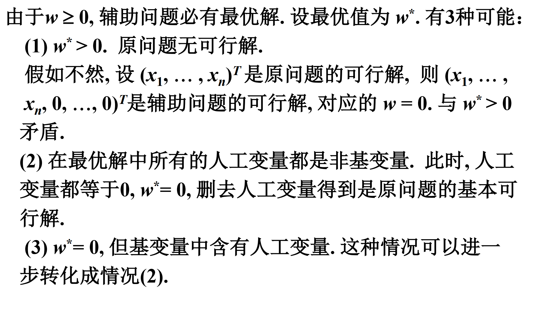 当\(w=0\)的时候,如果人工变量有作为基变量,需要再次进行分类讨论。