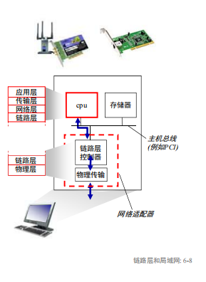 链路层实现在 网络适配器(NIC)上,许多功能是由硬件实现的