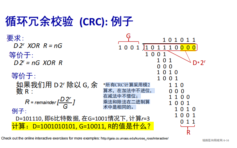 CRC校验码中,R的长度比G的长度少1。