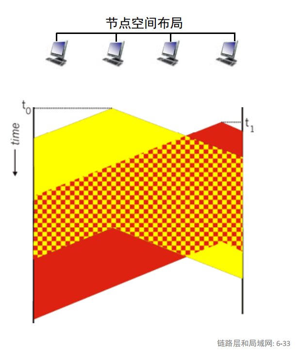 - 缺点:当有大量帧传输时,碰撞开销很大,还有空闲时隙和时钟同步的问题