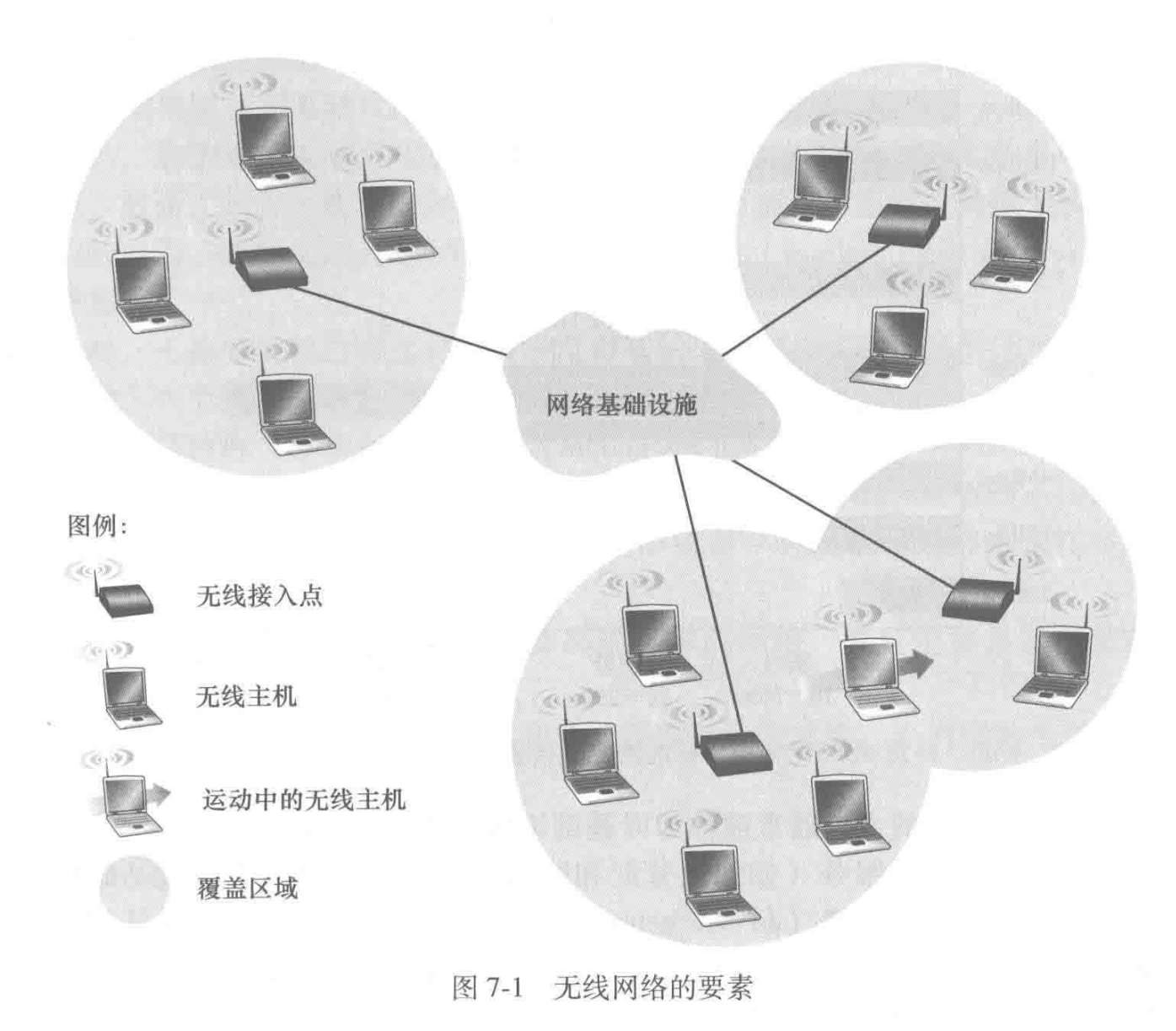 无线网络包含的要素:无线主机,无线链路,基站。
