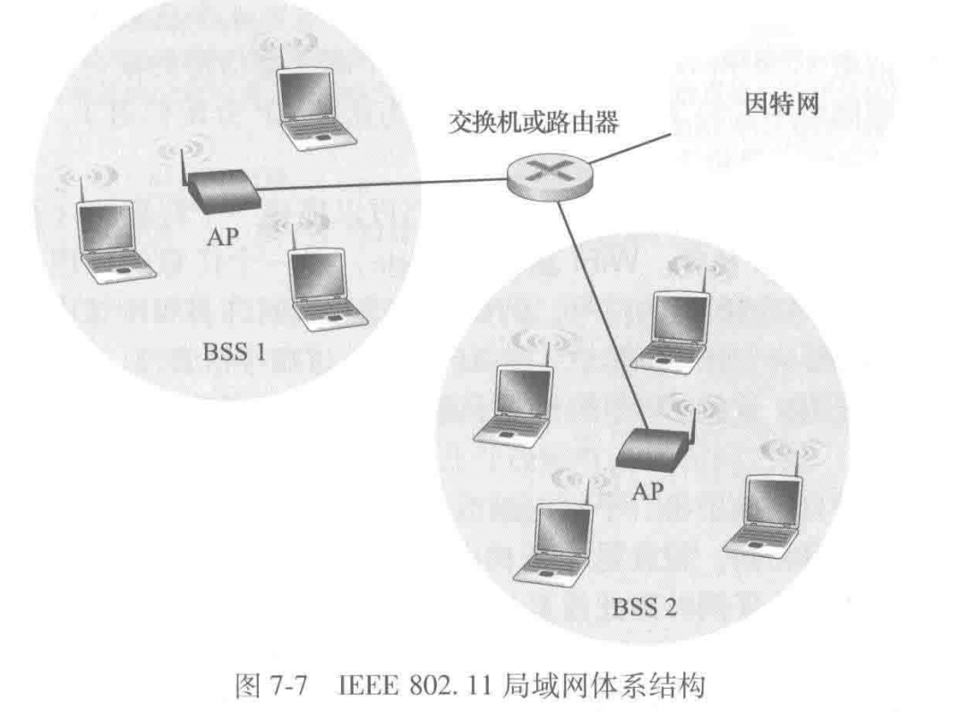 为了获取互联网接入,无线站点(你的手机)需要和多个AP中的一个相关联。802.11标准要求每个AP周期性地发送信标帧,每个信标帧包括该AP的SSID和MAC地址(就是手机的wifi页面上的wifi名称)。你的手机为了得知正在发送信标帧的AP,会扫描11个信道,找出来自可能位于该区域的AP所发出的信标帧。