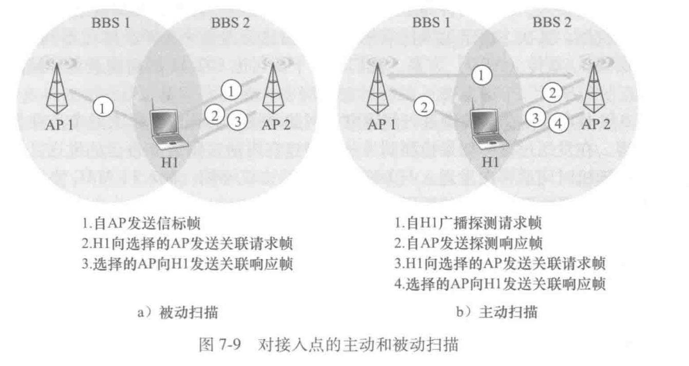 扫描信道和监听信标帧的过程被称为被动扫描。同时无线站点也可以进行主动扫描。向位于其范围内的所有AP广播探测帧完成的。